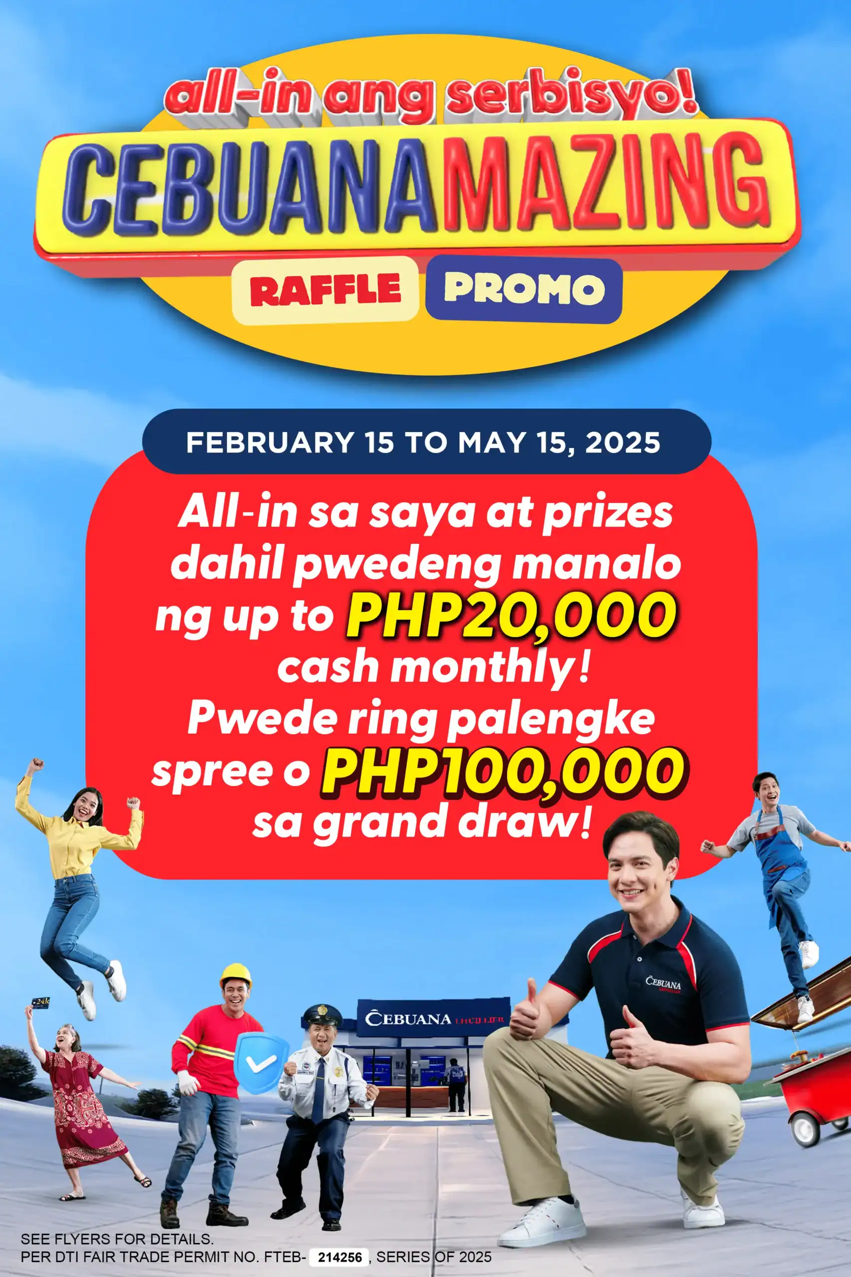 1. This promo is open to all clients who will avail of the qualified Cebuana Lhuillier products and services at any of the over 3,500 branches nationwide from February 15 to May 15, 2025.