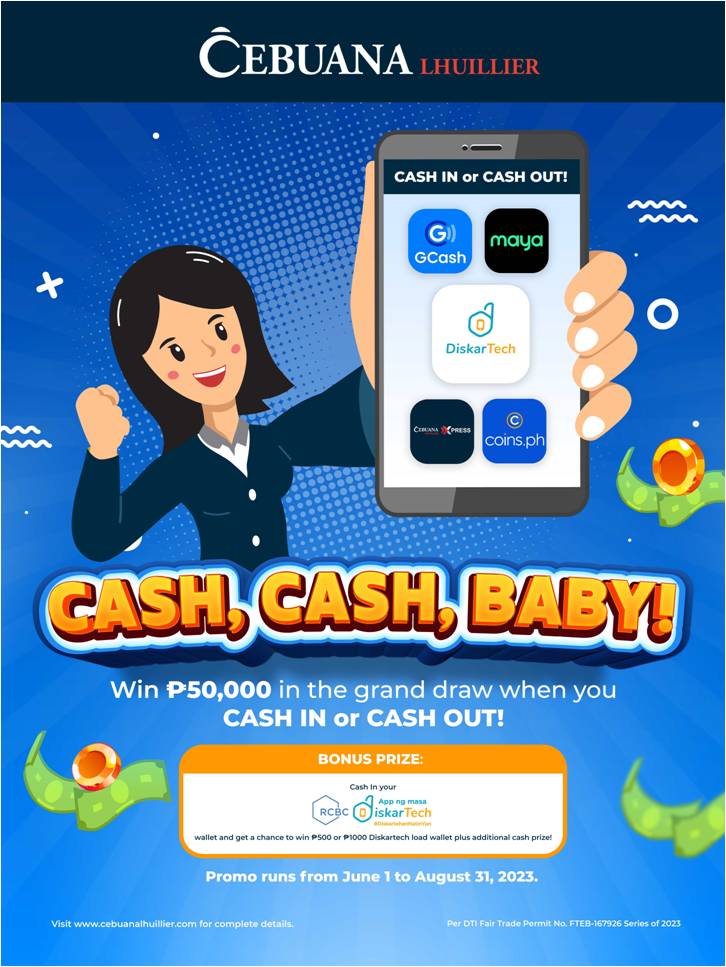 1. All clients who will cash in or cash out to any e-wallet partner at any Cebuana Lhuillier branch or authorized retail agents will earn an e-raffle entry for every