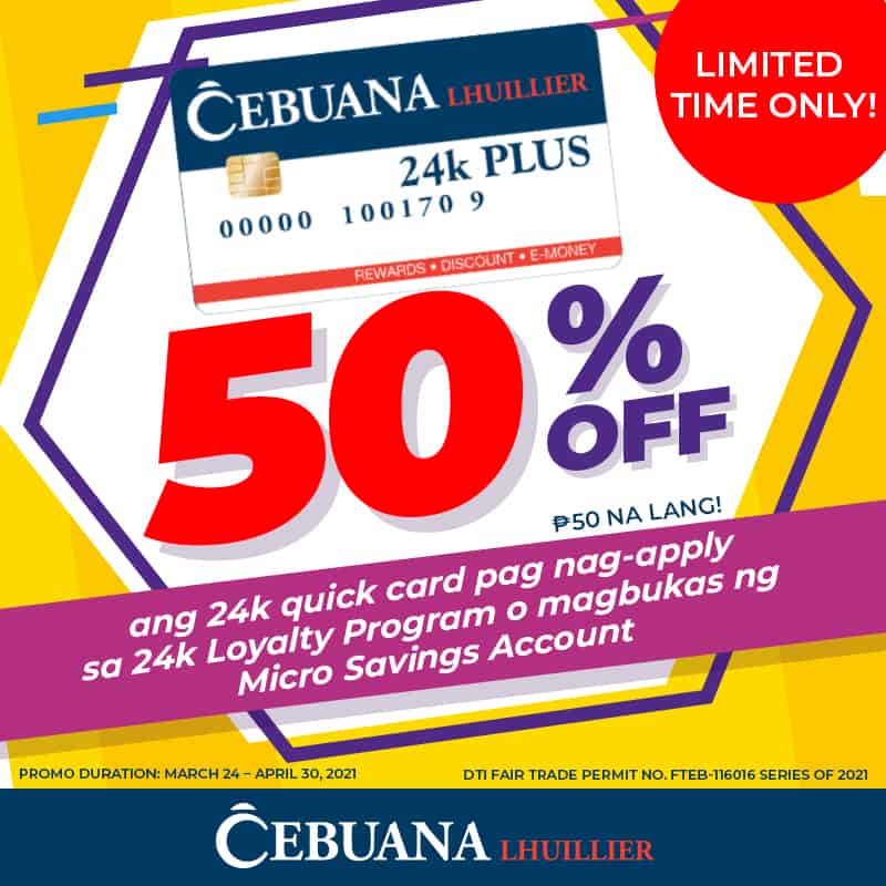 - Card price will be discounted from P100 to P50 from March 24 to April 30, 2021.