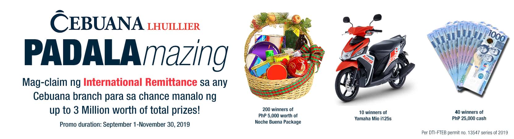 1. Ang promo na ito ay bukas para sa lahat ng clients na kukuha ng pera mula sa mga participating partners abroad sa close to 2,500 branches ng Cebuana Lhuillier.