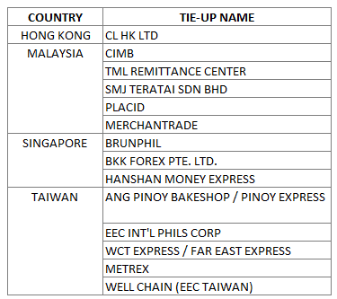 - Complete qualified transaction: Remittance (any amount) from Taiwan, Singapore, Hong Kong, and Malaysia to the Philippines through any of CL’s participating remittance partners and claimed in 2,500 branches nationwide.