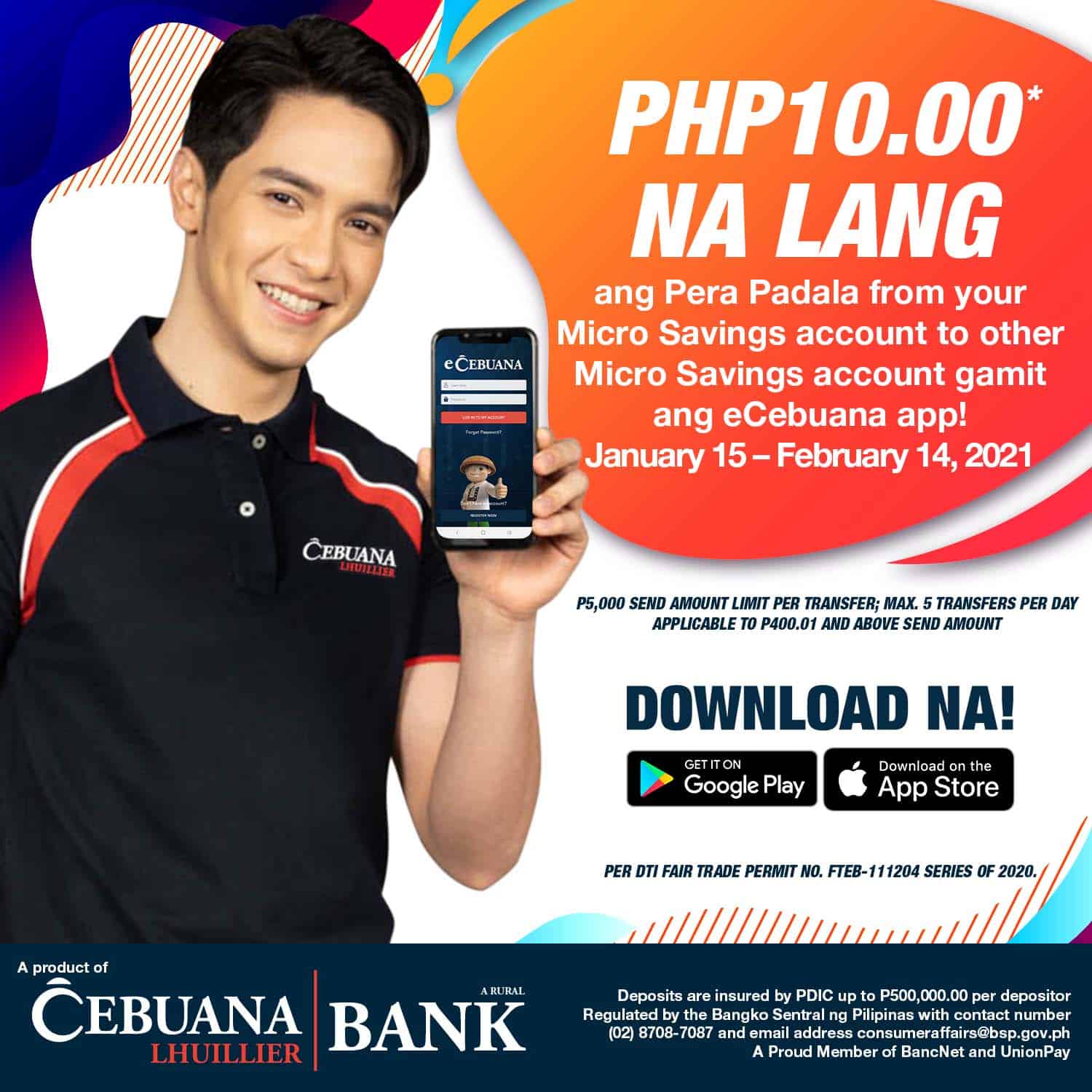 - The discount for fund transfer is available to all eCebuana mobile app users and Micro Savings Account Holders only.