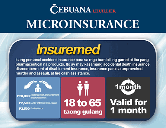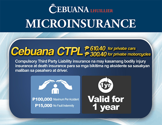 Cebuana Lhuillier currently offers accident, vehicle, property, health, life & comprehensive insurances that are tailor-fit to the needs of every Filipino.