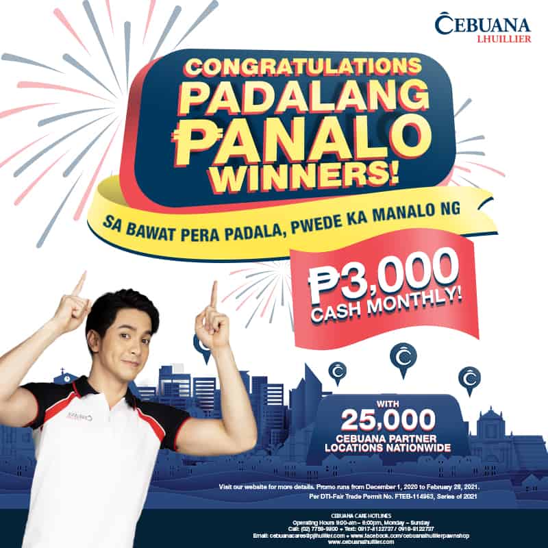 Congratulations sa winners ng PADALANG PANALO! Pumunta na sa inyong transacting Cebuana branch to claim your prize.