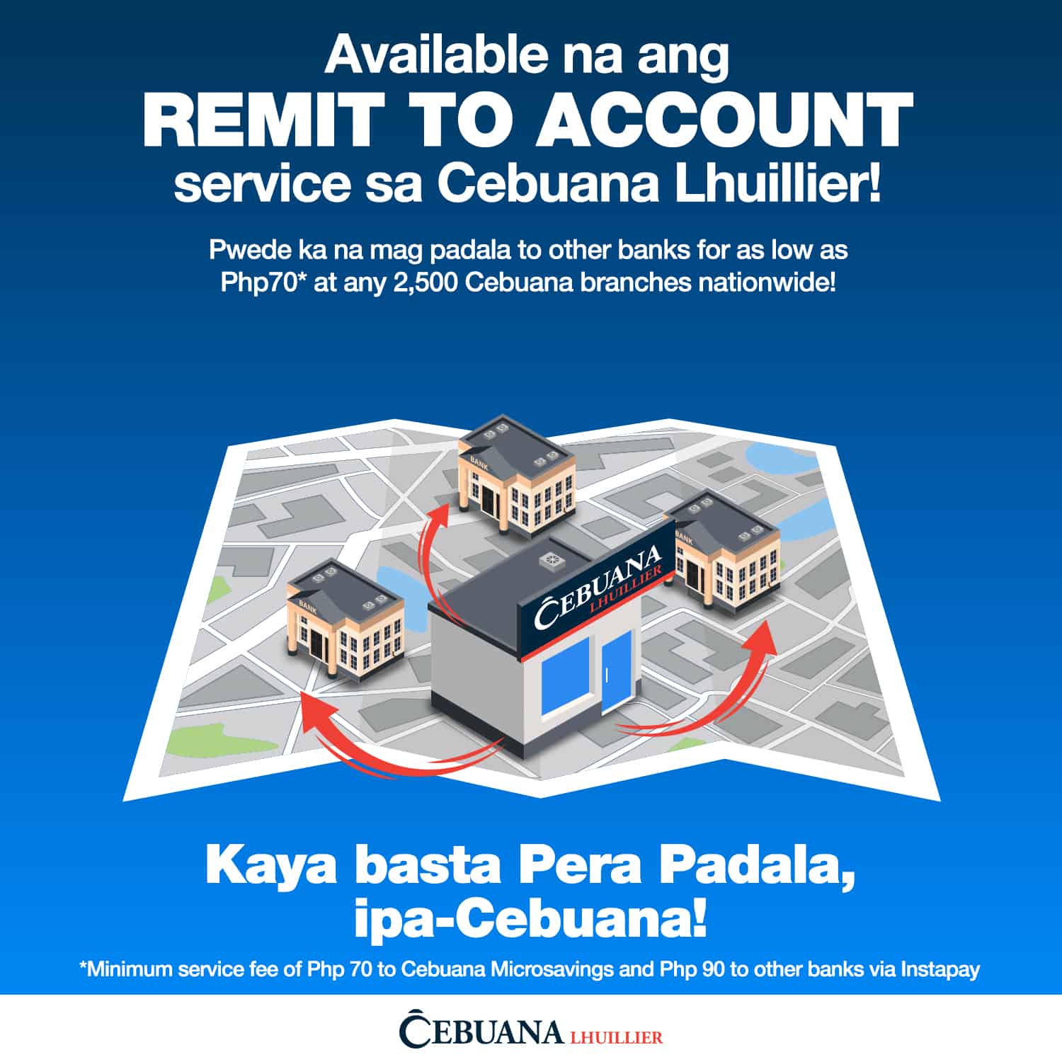 Aside from going to the branch you can also transfer money via eCebuana App and Cebuana from Home portal.