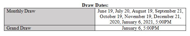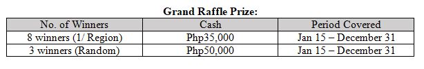 6) Non-winning entries in the monthly draw can still be drawn in the succeeding months. In the grand draw, all entries from January 15 to December 31, 2020 will be included.