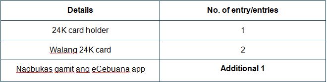 3.Makakatangap ng e-raffle entry kapag nagbukas ng Micro Savings Account mula sa alinman sa 2,500 Cebuana Lhuillier branches, o gamit ang eCebuana app.